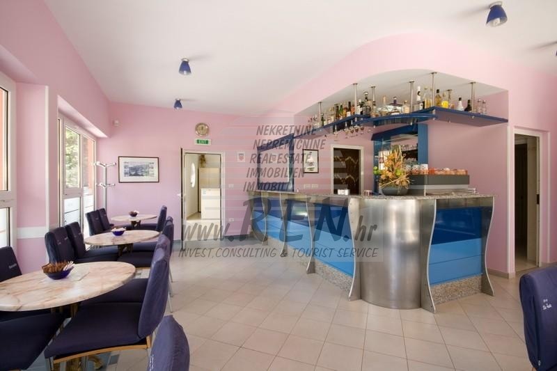 Kuća ima ukupno 1130 m2, udaljena je 5 min. (200m) od mora i od prekrasne uređene prirodne plaže, 5 min. (1000m) udaljeni ste od centra grada Umaga. Kuća ima prizemlje prvi i drugi kat. Kuća se sastoji od 14 apartmana, recepcije i poslovnog prostora-bar. Odlična lokacija.