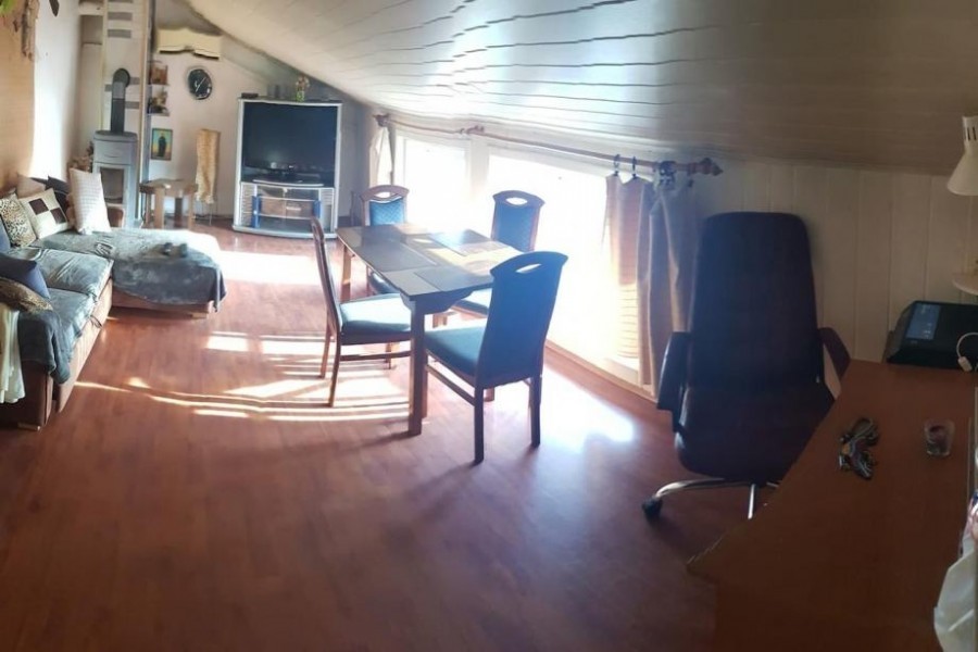 Stan je nalazi u potkrovlju zgrade, prostran, s dobrom toplinksom izolacijom , nedavno renoviran. Sastoi se od dnevnog boravka, kuhinje, 4 spvaće sobe, kupaone, balkona s iznimnim pogledom na more. Laminati i očuvane, nove pločice čine ugodan i topao pod, a novo izrađena fasada i PVC prozori osiguravaju kvalitetnu toplinsku izolaciju, a brodski pod na stropu i obloge od dvrenih panela doprinose kombinaciji vizualno rustikalnog, ali uporabno i praktično modernog prostora za život. Uz stan dolazi i prizemni pomoćni objekt: konoba, od 45.00 m2, legalizirana, sa kamenim škriljama na unutrašnjosti zida, bojlerom, kompletnim sanitarnim čvorom te klimom za grijanje. Ispred konobe je i natkriven prostor za vrtnu garnituru, te je u konobi struja potpuno sprovedena (postoji razvodna kutija). Ne propustite pogledati.