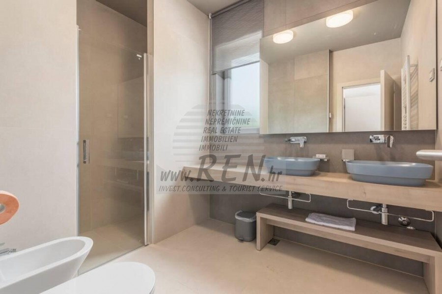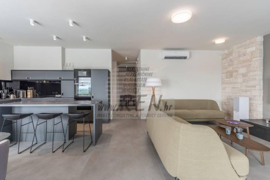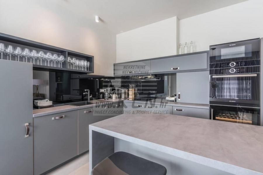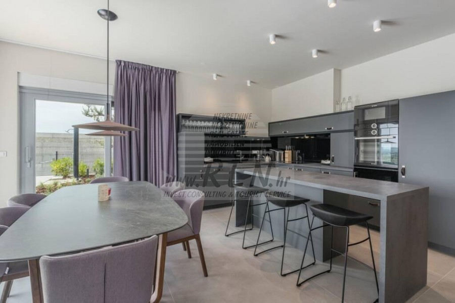 U sklopu kuće nalaze se: 4 spavaće sobe, kuhinja, dnevni boravak, 4 kupatila, sauna, kamin, prekrasan pogled, bazen.