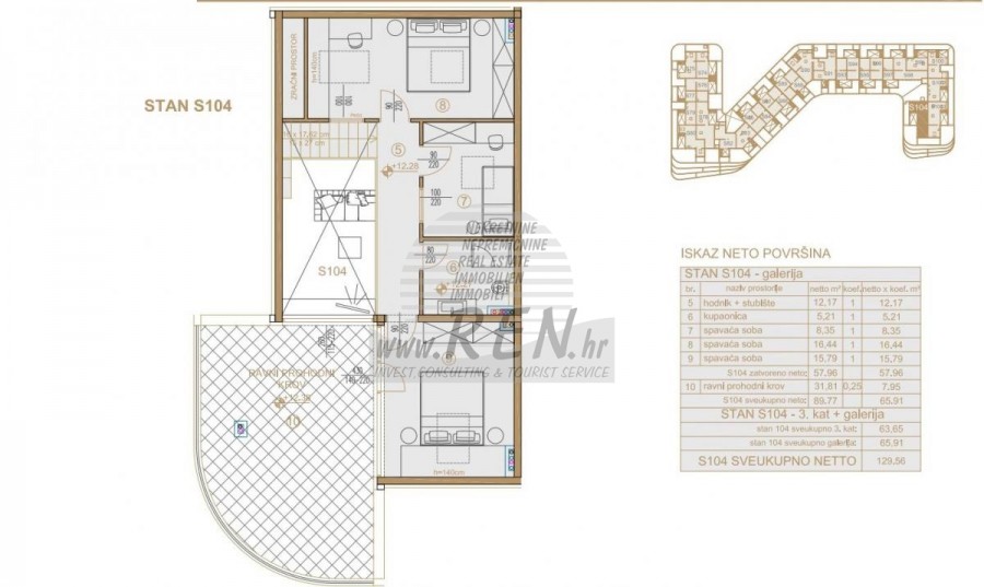 Stan u Poreču ima ukupno 129,56 m2, nalazi se na trećem katu + galerija sa krovnom terasom, faza gradnje, udaljen je 5 min. (300m) od mora i od prekrasne uređene plaže, 5 min. (300m) udaljeni ste od centra grada Poreča. Stan se sastoji od kuhinje/dnevnog boravka/blagovaone, 4 spavaće sobe, 2 kupaonice, terasa. Opremljen je klima uređajem, lift, prekrasan pogled na more. Parkirno mjesto u garaži se posebno plaća 30.000,00€.
