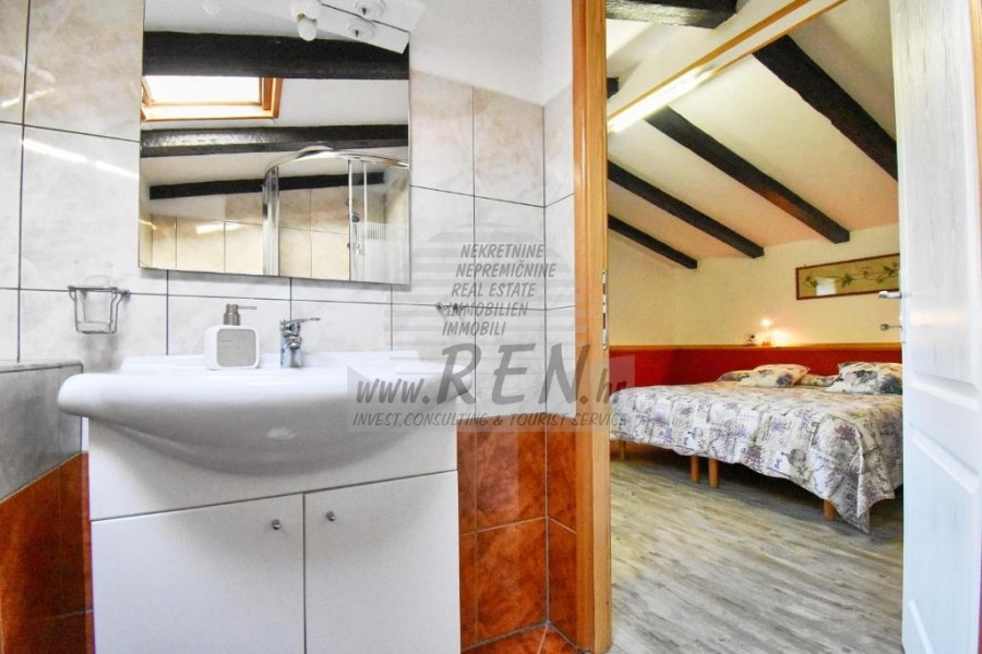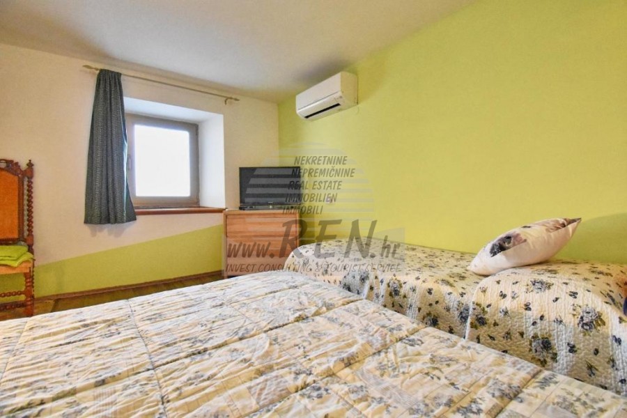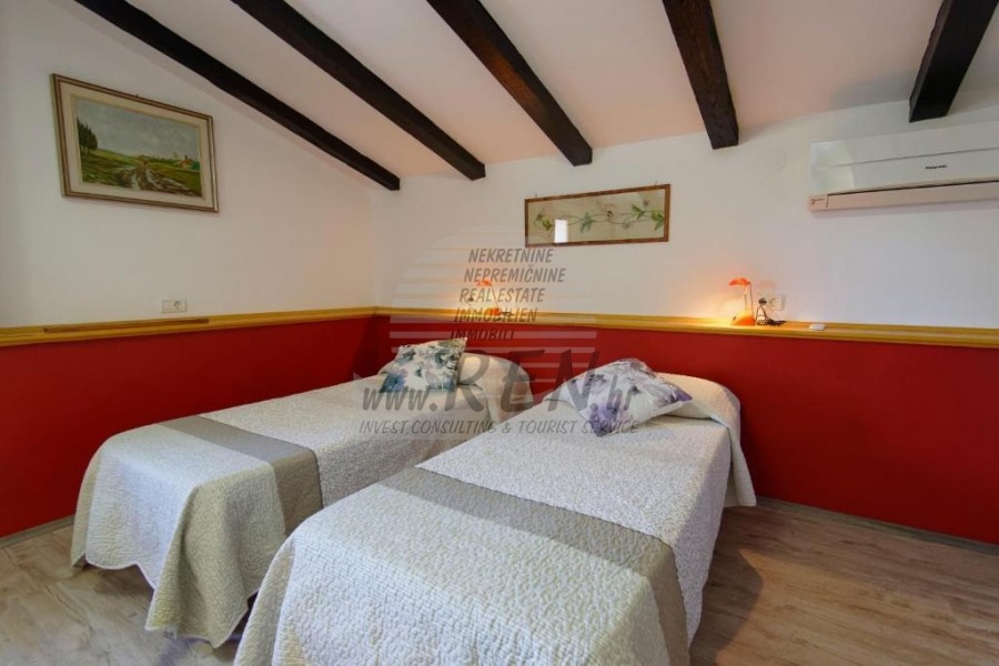 U sklopu kuće nalaze se: 5 spavaćih soba, kuhinja, dnevni boravak, kupatilo, kantina, kamin, prekrasan pogled.