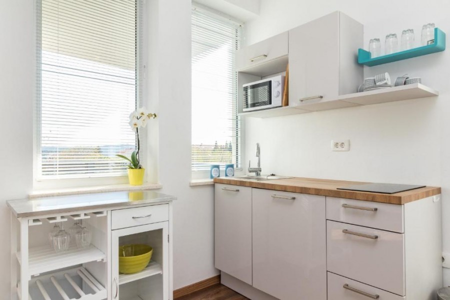 2. kat : apartman s balkonom – spavaća soba, dnevni boravak+kuhinja i kupaona;
