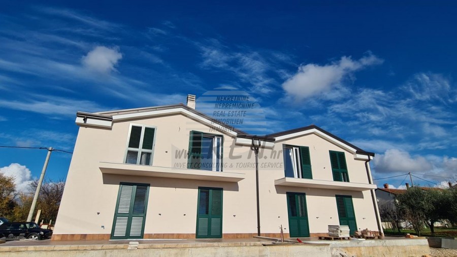 Kuća ima ukupno 280 m2, zemljišta ima 600 m2, udaljena je 10 min. (4000m) od mora i od prekrasne uređene prirodne plaže, 10 min. (7000m) udaljeni ste od centra Umaga. Kuća ima prizemlje i prvi kat te 4 odvojena stana. Svaki stan ima ukupno 2 spavaće sobe, kuhinju, dnevnu sobu i kupatilo. Kompletno opremljena, klima jedinica, mirna lokacija.