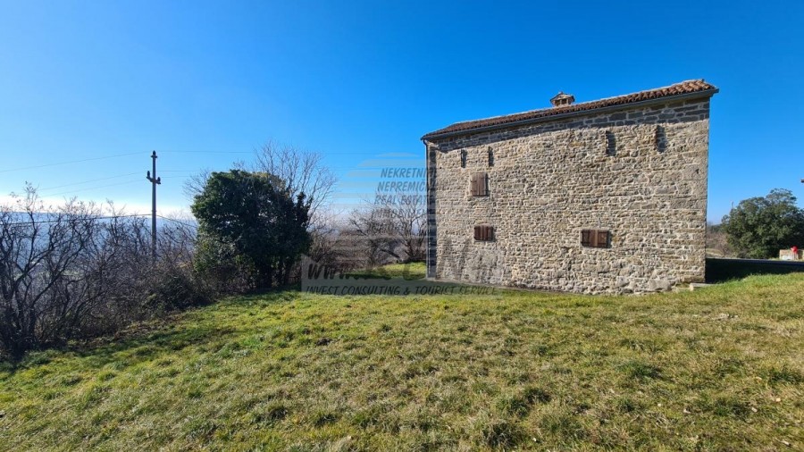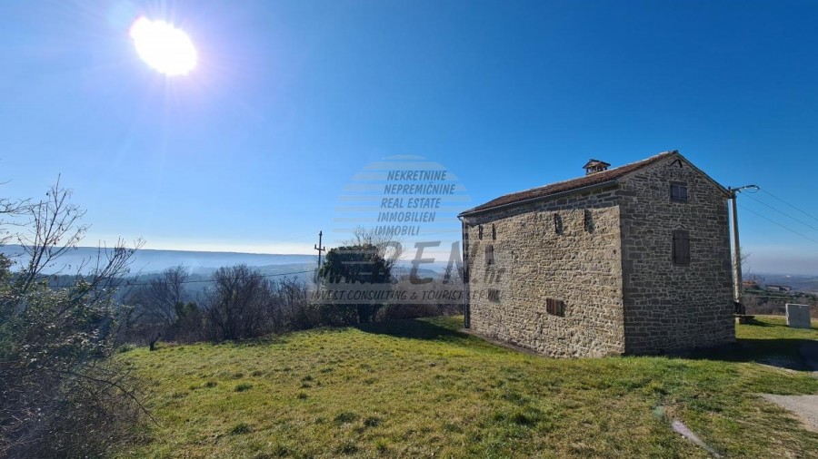 Na prekrasnom brežuljku u okolici Grožnjana s otvorenim pogledom na prekrasan krajolik i more, prodaje se kamena samostojeća kuća restaurirana na tradicionalan način. Ima 2 etaže (plus galerija) ukupne površine od 60 m2, na parceli površine 400 m2.