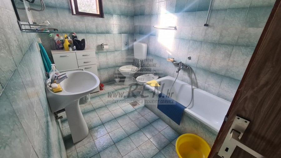 Stan u Novigradu ima ukupno 104 m2 + vrt, nalazi se u prizemlju kuće, 5 min. (600m) od mora i od uređene plaže, 5 min. (800m) udaljeni ste od centra grada Novigrada. Stan se sastoji od 2 kuhinje sa blagavaonicom i dnevnim boravkom, 2 kupatila, WC, 2 spavaće sobe, hodnik i 2 terase, garaža i konoba. Kompletno opremljen, podrum, parking, dimnjak. Potrebna određena adaptacija. Moguće napraviti 2 zasebna stana svaki sa svojim ulazom.