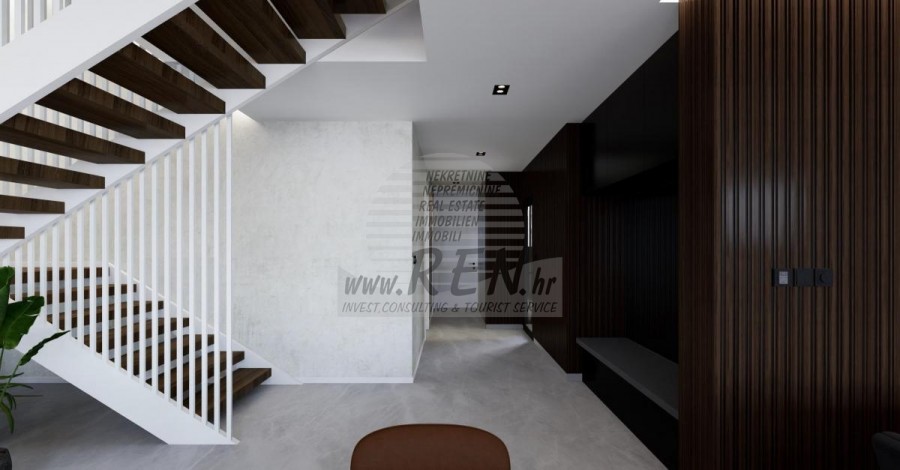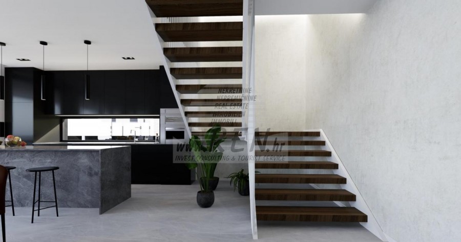 • Dnevni boravak je opremljen vrhunskim talijanskim namještajem marke Tomasella, Sedit-Italia, Veneta Cucine, a sjedeća garnitura je marke Natuzzi.