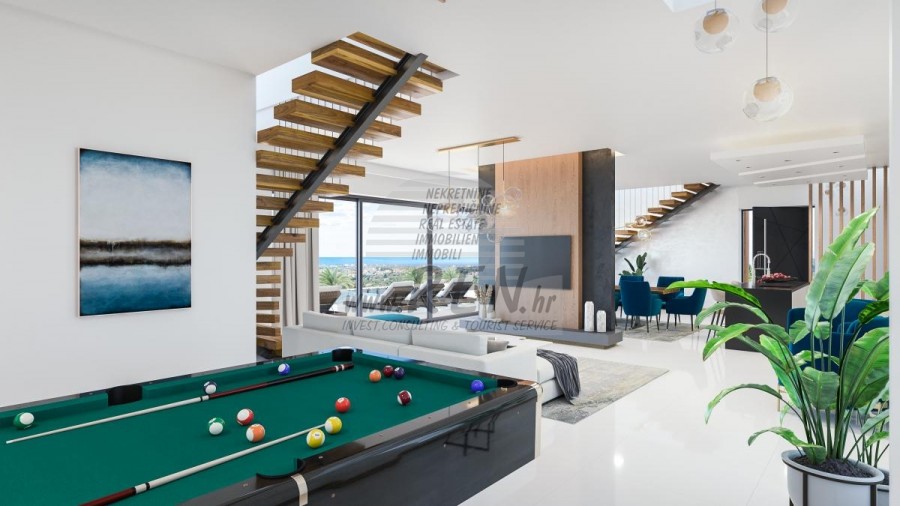 • Veliki dnevni boravak s otvorenim prostorom prema blagovaonici, kuhinji, biljar prostoriji