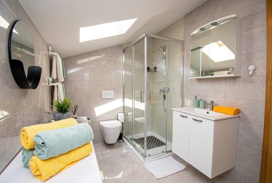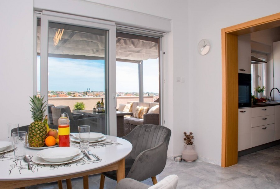 Na izvrsnoj lokaciji u Medulinu, prodaje se moderno uređen i kompletno namješten apartman u novogradnji u naselju Mukalba. Stan je površine 65m2 i smješten u potkrovlju kvalitetne zgrade. Ovaj izniman stan se sastoji od dnevnog boravka s kompletno opremljenom kuhinjom, spavaće sobe, kupaonice i velike terase (40m2) sa pogledom na more, pružajući savršeno mjesto za odmor i opuštanje.