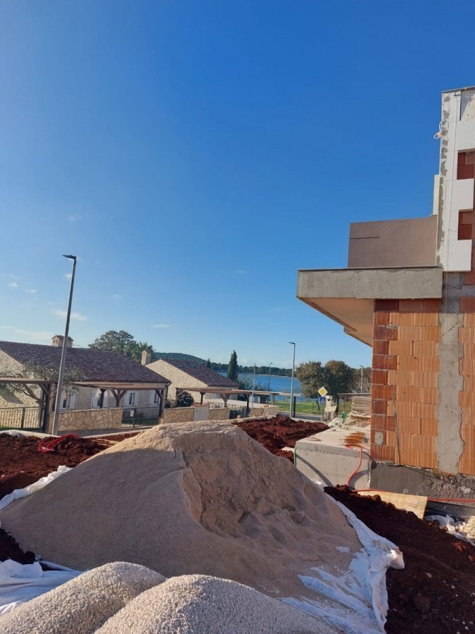 Medulin, Pošesi, top lokacija!!! Na vrhunskoj lokaciji u Medulinu, samo 100 m od plaže, prodaju se stanvi u novogradnji. Samo 100 metara od mora i plaze s fantastičnim pogledom na more iz prizemlja! Riječ je o novogradnji zatvorenog tipa vrhunske kvalitete s vrhunskim građevinskim materijalima, liftom, klimom, podnim grijanjem, panoramskim ostakljenjem. Postoji mogućnost kupnje parkirnog mjesta za svaki stan i spremišta od cca. 20 m2 brutto za svaku jedinicu u podrumu. Kompleks se sastoji od dvije zgrade sa po 8 stanova. U ponudi je apartman broj 4 od 80.23m2 koji se sastoji od 2spavaće sobe,2 kupaonice, dnevnog boravka s kuhinjom, te terasom, sa pogledom na more. Ukupna cijena je 530000 eura.