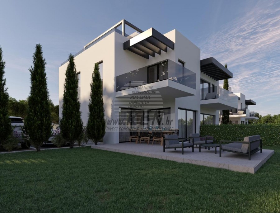 Kuća u okolici Novigrada ima ukupno 150 m2 + vrt 180 m2, sastoji se od prizemlja, prvog kata te krovna terasa, faza gradnje, udaljena je 5 min. (300m) od mora i od prekrasne uređene plaže, 5 min. (4500m) udaljeni ste od centra grada Novigrada. Kuća se sastoji od kuhinje/dnevnog boravka/blagovaone, 3 spavaće sobe, 2 kupatila, WC, 2 terase + krovna terasa. Opremljena je klima uređajem, 2 vlastita parkinga, pogled na more.