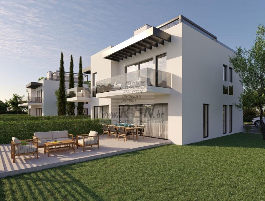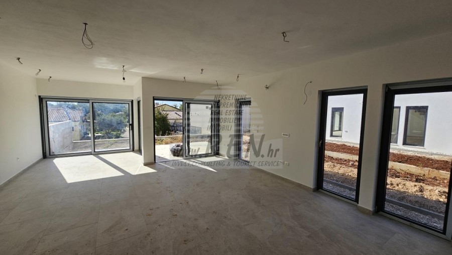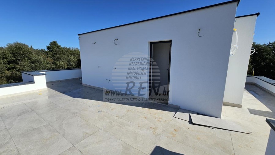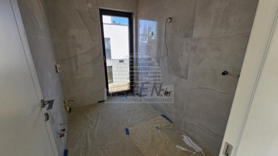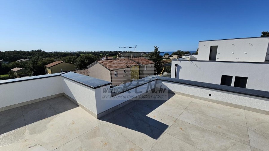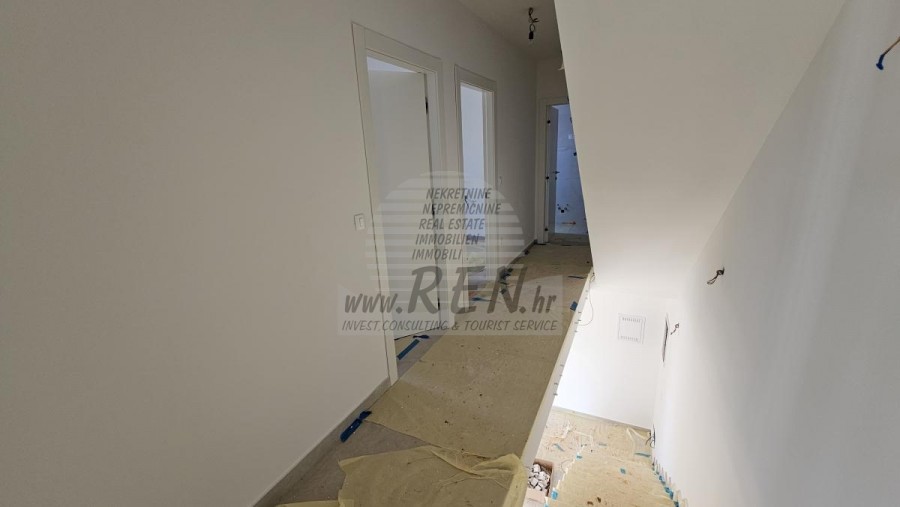 Kuća u okolici Novigrada ima ukupno 150 m2 + vrt 180 m2, sastoji se od prizemlja, prvog kata te krovna terasa, faza gradnje, udaljena je 5 min. (300m) od mora i od prekrasne uređene plaže, 5 min. (4500m) udaljeni ste od centra grada Novigrada. Kuća se sastoji od kuhinje/dnevnog boravka/blagovaone, 3 spavaće sobe, 2 kupatila, WC, 2 terase + krovna terasa. Opremljena je klima uređajem, 2 vlastita parkinga, pogled na more.