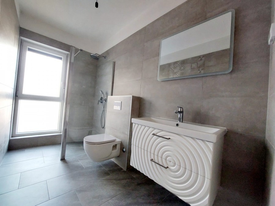 Stan je visokokvalitetno građen, ima podno grijanje u kupatilima i dnevnom boravku, pvc stolariju, ugrađene komarnike, inverter klimu. U cijenu su uračunati i spremište te natkriveno parkirno mjesto.