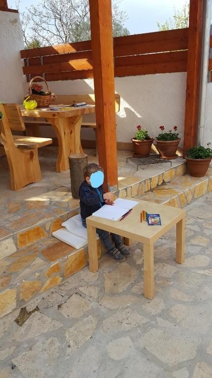 Na prekrasnoj okućnici je i još jedna objekt, u naravi studio apartman koji se sastoji od spavaonice s kuhinjom te kupaone, te još jedna veća prostorija koja je u naravi praona i spremište. te natkriveni prostor s grilom i velikom stolom i masivnom klupom.