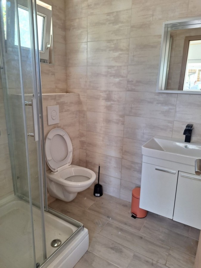 Lokacija je dobra , u blizini škole , vrtića , supermarketa a do plaže je cca 500 m .