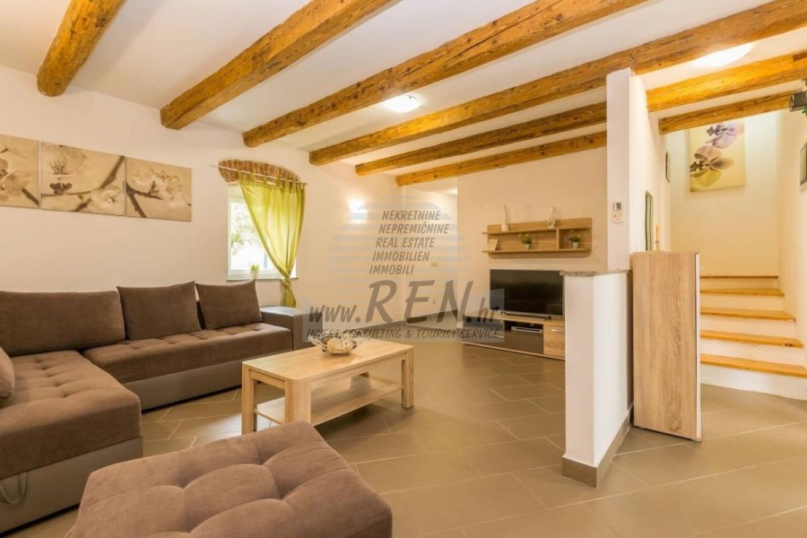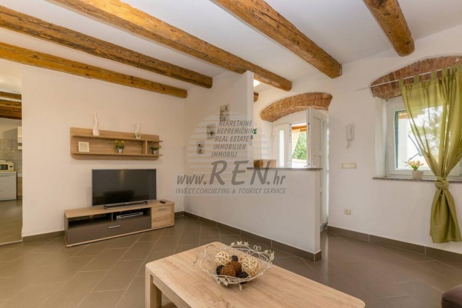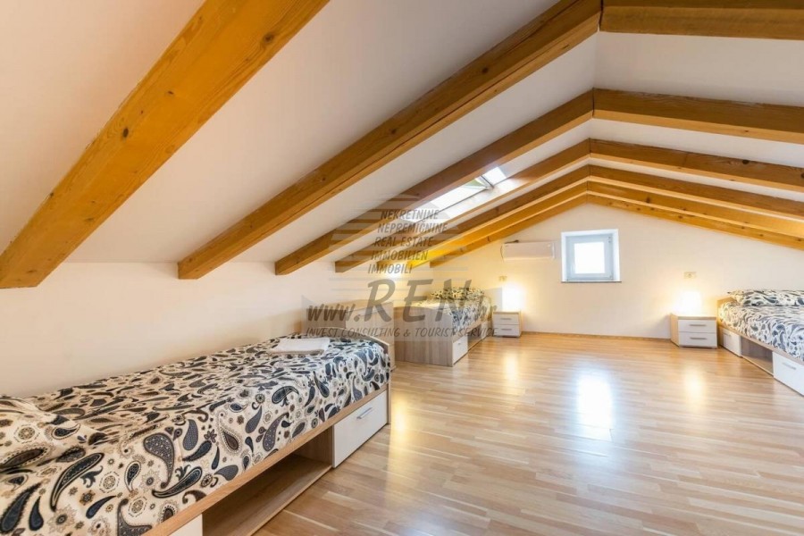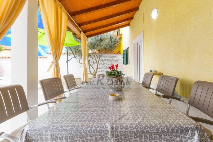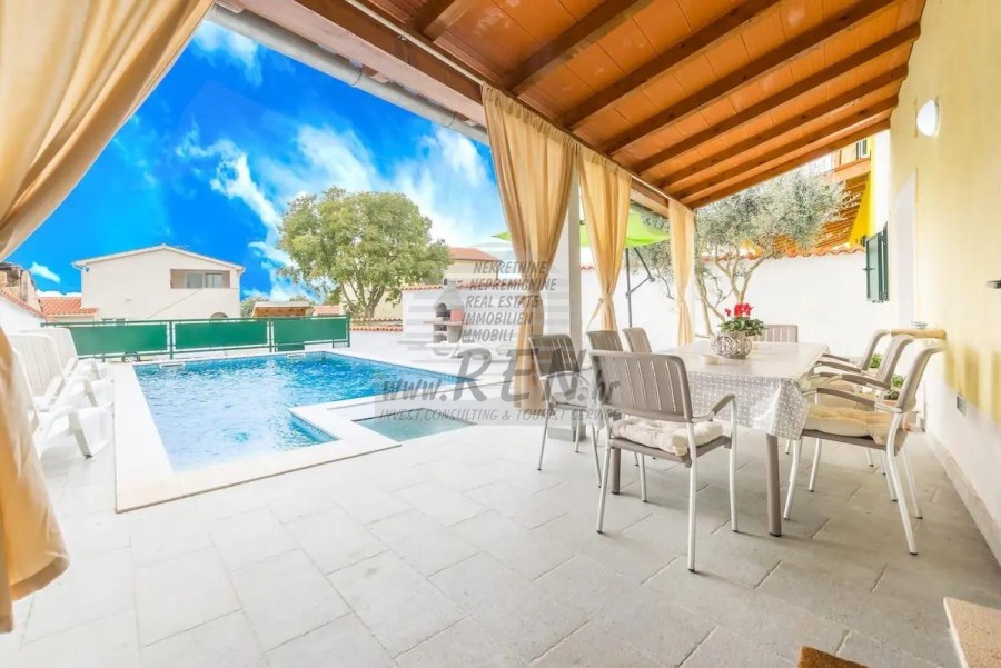 Prodaje se kuća u nizu na mirnoj lokaciji blizu Pule. Kuća ima 130 m2 te se sastoji od natkrivenog ulaza, ulaznog hodnika, praone, 3 spavaće sobe od koje 2 imaju svoje privatno kupatilo i open space prostor u kojem se nalazi kuhinja s blagovaonicom te dnevni boravak s izlazom na natkrivenu terasu i vrt. Kuća ima bazen i dvorište od 150 m2. Svaka prostorija u kući opremljena je klima uređajem (ukupno 4). Kuća je kompletno namještena. 2 i više parking mjesta. Udaljenost od mora i lijepo uređene plaže je 4 km, a centar Pule 3 km. Kuću je moguće koristiti u stambene ili turističke svrhe.