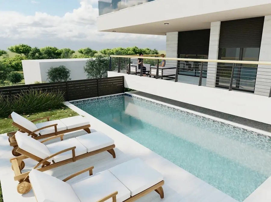Apartman A1 se nalazi u u prizemlju zgrade A., i sastoji se od ulaznog hodnika, 3 spavaće sobe, 3 kupaone, zasebnog toaleta, dnevnog boravka s kuhinjom i blagovaonom, natkrivene terase od 35.85 m2, te 2 parkirna mjesta.