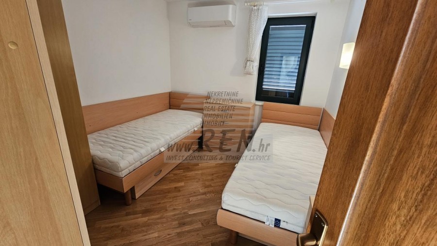Stan u Novigradu na odličnoj lokaciji ima ukupno 55 m2, nalazi se na prvom katu, izgrađen je 1991 godine, udaljen je 1 min. (20m) od mora i od prekrasne uređene plaže, 1 min. (50m) udaljeni ste od centra grada Novigrada. Stan se sastoji od 2 spavaće sobe, kupatila, kuhinje, terase. Opremljen je klima uređajem, vlastiti parking, podzemna garaža, namještaj uključen.