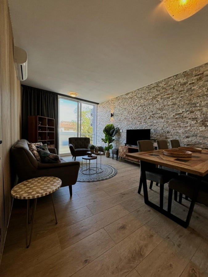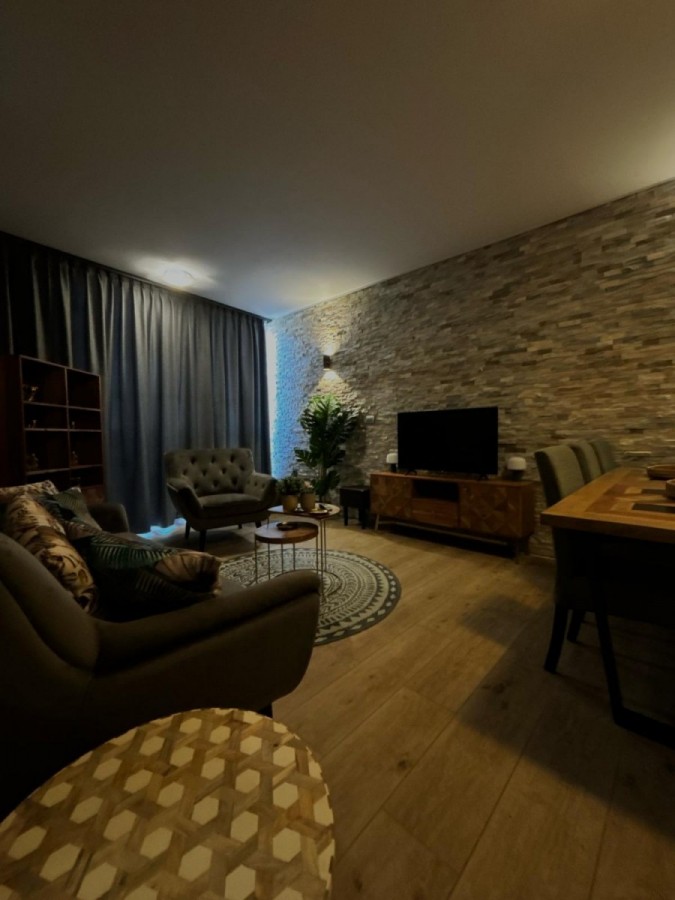 Stan se nalazi na 1. katu manje zgrade , locirane na samoj šetnicu , svega 200 metara od mora.