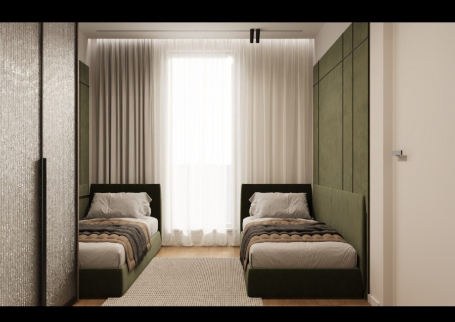 Stan obuhvaća ulazni hodnik, dnevni boravak s kuhinjom,2 kupaonice, tri spavaće sobe, spremište, te veliki balkon . Uz stan dolaze i dva parkirna mjesta.