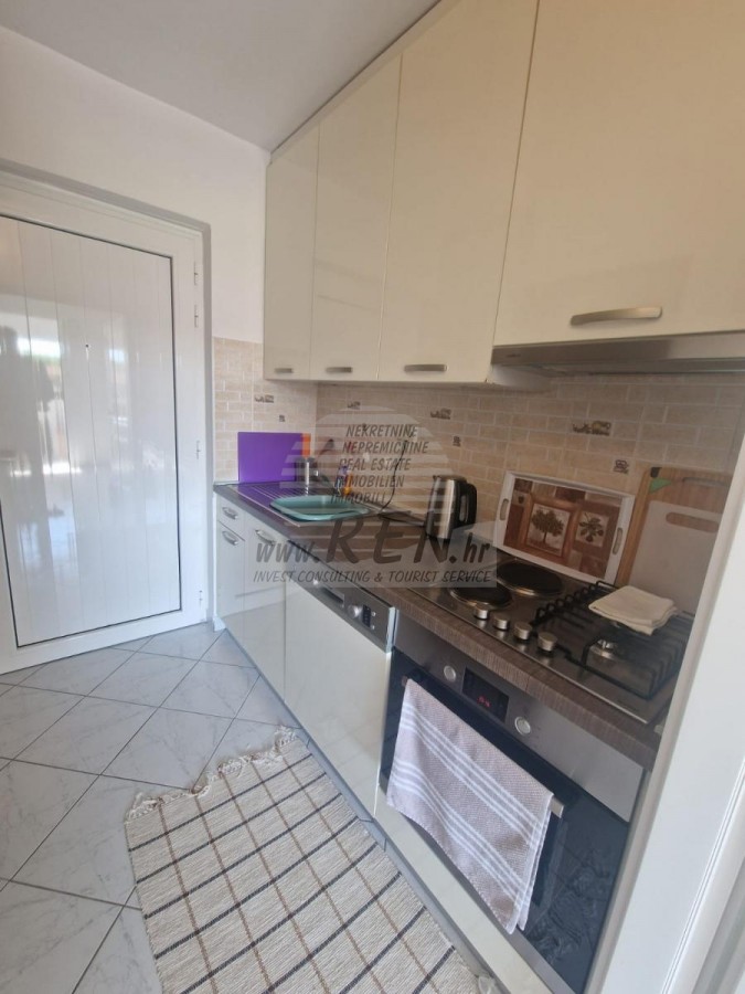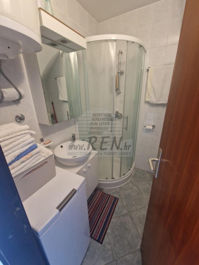 Stan u okolici Novigrada ima ukupno 43 m2, nalazi se na prvom i drugom katu, udaljen je 5 min. (300m) od mora i od prekrasne uređene plaže, 10 min. (3000m) udaljeni ste od centra grada Novigrada. Stan se sastoji od kuhinje, dnevnog boravaka, kupatilo, sobe, terase. Opremljen je klima uređajem, pogled na more.