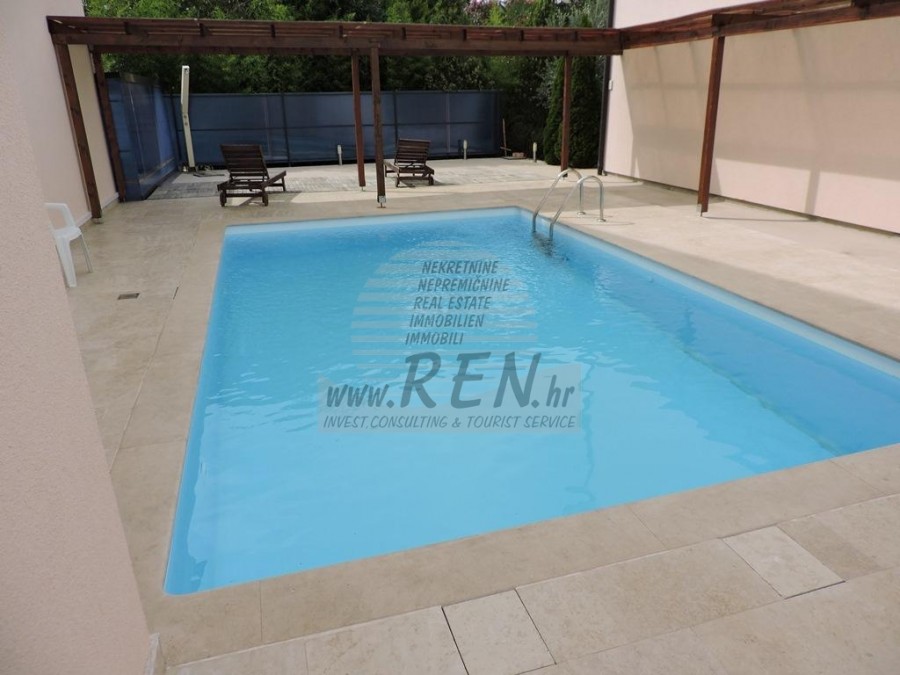 Predstavljamo jedinstvenu priliku — nekretninu u prizemlju manje stambene zgrade koja nudi spoj stanovanja, poslovnog potencijala i luksuza na otvorenom. Nekretnina obuhvaća dvije potpuno odvojene stambene jedinice, poslovni prostor, prostrani privatni vrt, bazen sa sunčalištem te čak šest ograđenih parkirnih mjesta. U sklopu dvorišta nalazi se i vrtna kućica sa spremištem, idealna za dodatne sadržaje ili hobi prostor. Stanovi površine 70 m² i 80 m² prodaju se u potpunosti namješteni i spremni za useljenje. Svaki stan nudi optimalan raspored: prostran dnevni boravak, kuhinju s blagovaonicom, dvije spavaće sobe i kupaonicu, što ih čini savršenima za obiteljski život ili turistički najam. Uz stambene jedinice nalazi se i poslovni prostor trenutno uređen kao ordinacija za fizioterapiju. Od stambenog dijela odvojen je prozirnim zidom radi potpune privatnosti, a sastoji se od prijemnog hodnika i kupaonice. Ovaj prostor lako se prilagođava različitim poslovnim namjenama. Uređeni vrt površine 221 m² krije pravu oazu — bazen s sunčalištem od 126 m², idealan za opuštanje i uživanje tijekom toplijih mjeseci uz potpunu privatnost. Nekretnina nudi i mogućnost spajanja dvaju stanova u jednu veliku cjelinu, što dodatno povećava njezin investicijski potencijal — bilo za luksuzno obiteljsko stanovanje, turistički najam ili kombinaciju stanovanja i poslovne djelatnosti. Grijanje i hlađenje osigurano je putem klima uređaja, dok jedan stan posjeduje i peć na drva za ugodnu atmosferu tijekom zimskih dana. Ovo je rijetka prilika za kupovinu svestrane nekretnine koja spaja komfor, privatnost i poslovne mogućnosti — savršeno rješenje za kvalitetan život ili investiciju s visokim povratom.